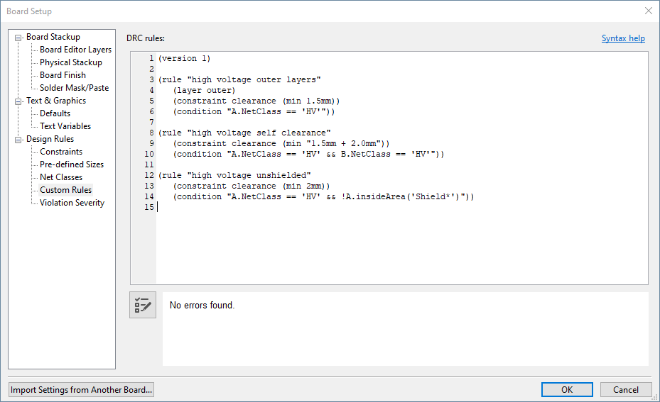 A new custom design rule system allows complex design rules to be defined, including area-specific rules, layer-specific rules, and other constraints required for advanced designs.